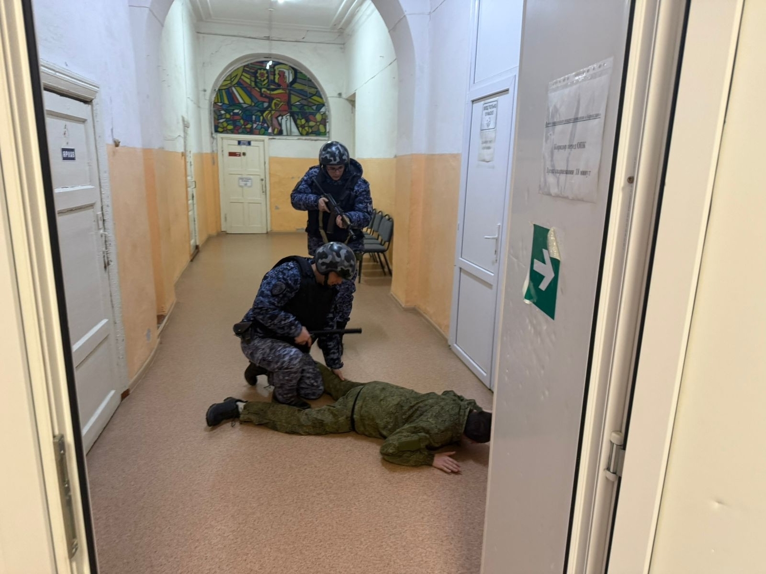 Учения по действиям при захвате заложников в Ржевском медицинском колледже На базе ГБПОУ Ржевский медицинский колледж состоялись еженедельные учения, посвященные отработке действий в случае захвата заложников. В мероприятии приняли участие представители Росгвардии, которые поделились своим опытом и провели практические занятия для студентов и преподавателей. Цель учений — повысить уровень готовности сотрудников колледжа к экстренным ситуациям, а также улучшить взаимодействие с правоохранительными органами. Участники учений ознакомились с основными алгоритмами действий, получили рекомендации по безопасности и узнали, как правильно реагировать в стрессовых ситуациях. Учения прошли в атмосфере сотрудничества и взаимопомощи. Студенты активно участвовали в симуляциях, задавали вопросы и получали ценные советы от профессионалов. Мы уверены, что такие мероприятия способствуют не только повышению уровня безопасности в учебном заведении, но и формированию у студентов навыков работы в команде и ответственности за свою безопасность и безопасность окружающих. Благодарим Росгвардию за поддержку и профессионализм! Вместе мы создаем безопасное образовательное пространство!