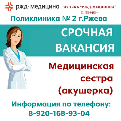 ГБУ КЦСОН Ржевского муниципального округа приглашает на работу в стационарное отделение для престарелых и инвалидов на должность медицинская сестра . Заработная плата 49000,00 руб. График работы 1/3. Стационарное отделение находится по адресу: Ржевский МО, с/п Медведево, д. Ульянково, 20 . Есть транспортное сообщение ( автобус 332 Ржев- Замятино). Телефон для связи 84823278631, 84823221028